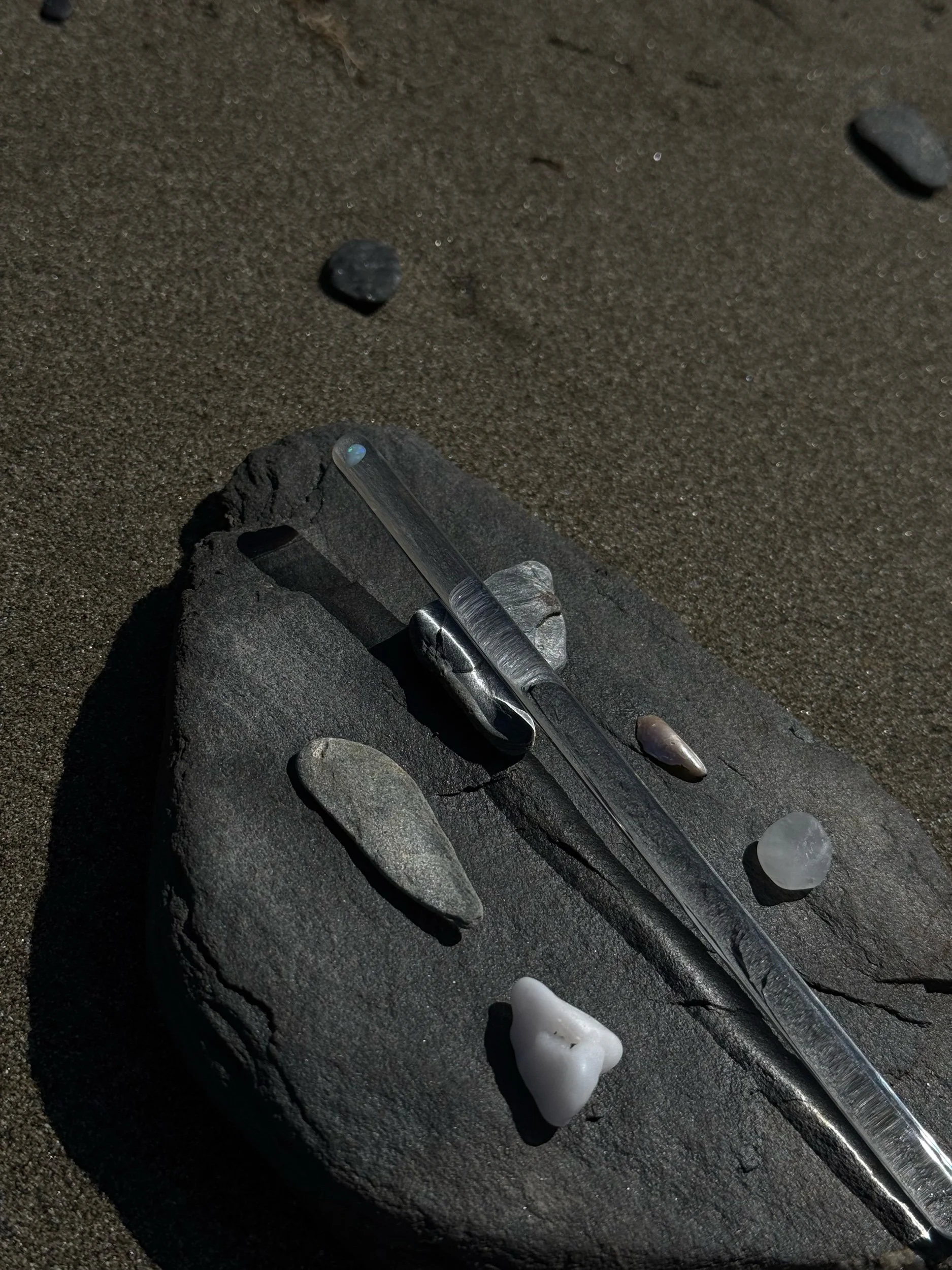 Fully translucent 8mm with a mini white tumbled opal floating within the tip